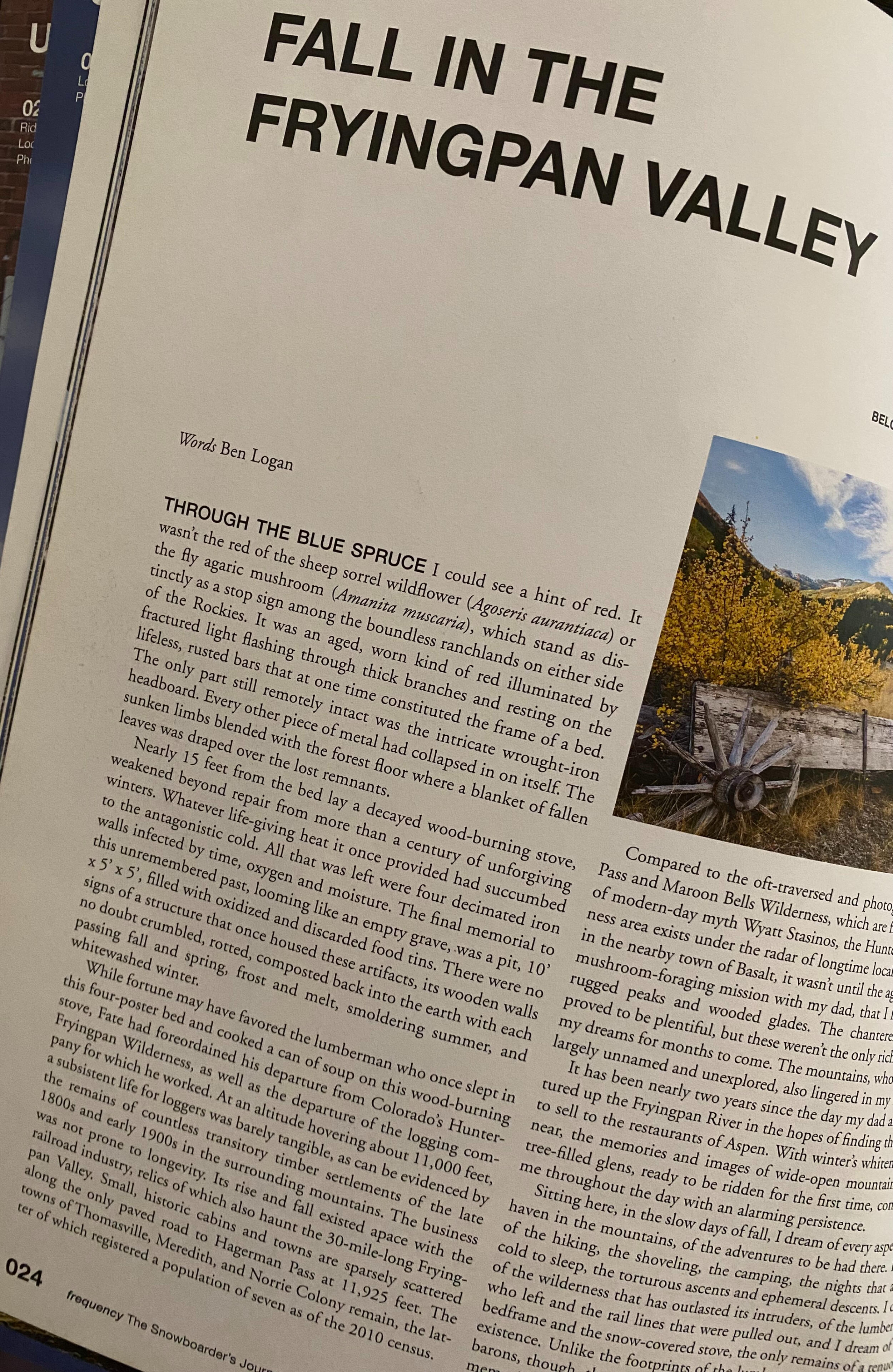 A meditation on Colorado's Hunter-Frying Pan Wilderness, where the golden leaves of fall and high altitude fungi share the forest with abandoned logging camps from the late 1800s. It's an exploration of impermanence, beauty, and what the mountains remember.The Snowboarder's Journal is snowboarding's premier literary publication, known for thoughtful, narrative-driven essays about mountain culture and the human relationships with wild places.